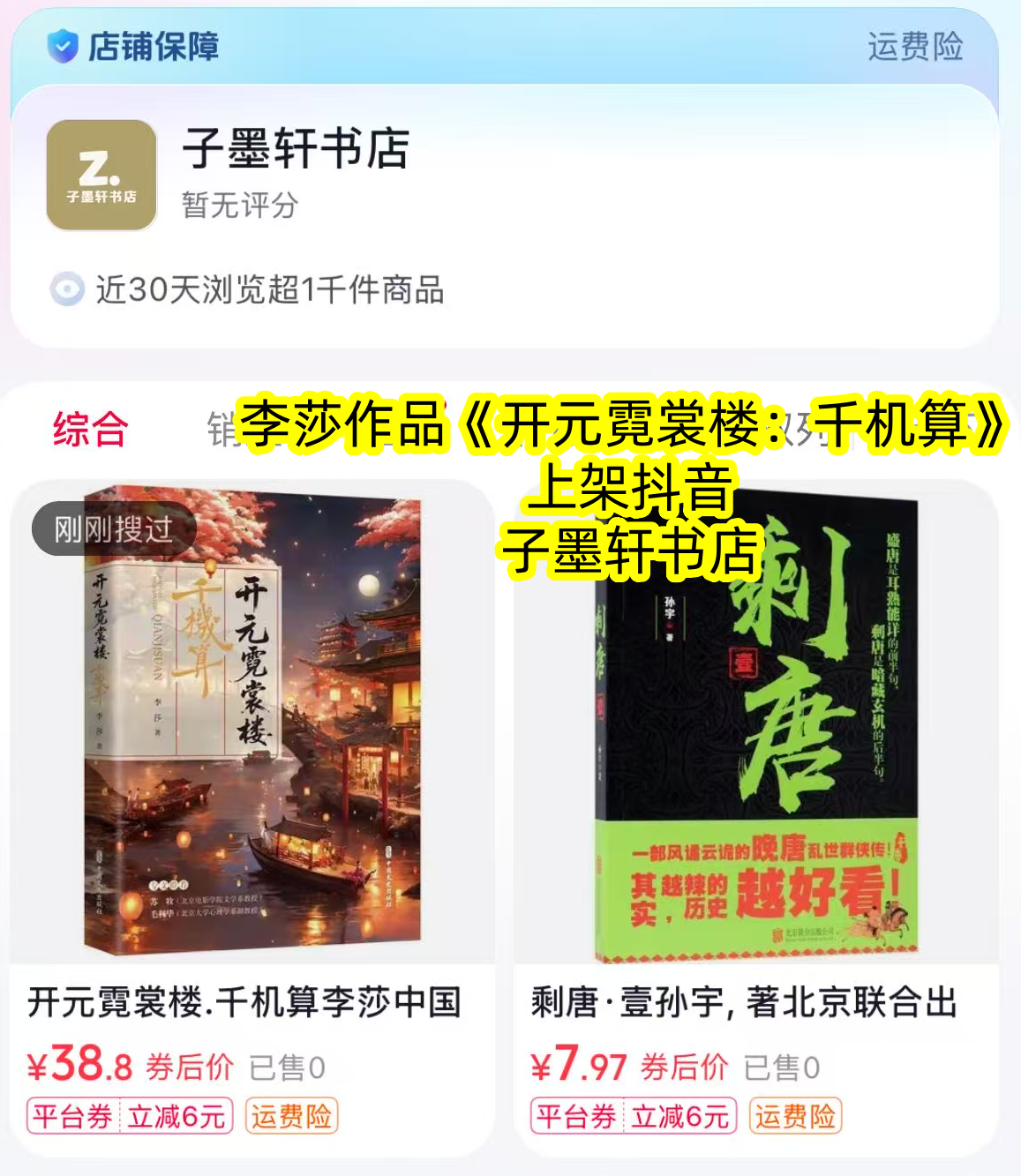 一、重磅官宣:李莎《开元霓裳楼:千机算》抖音商品正式上架