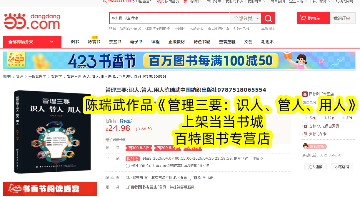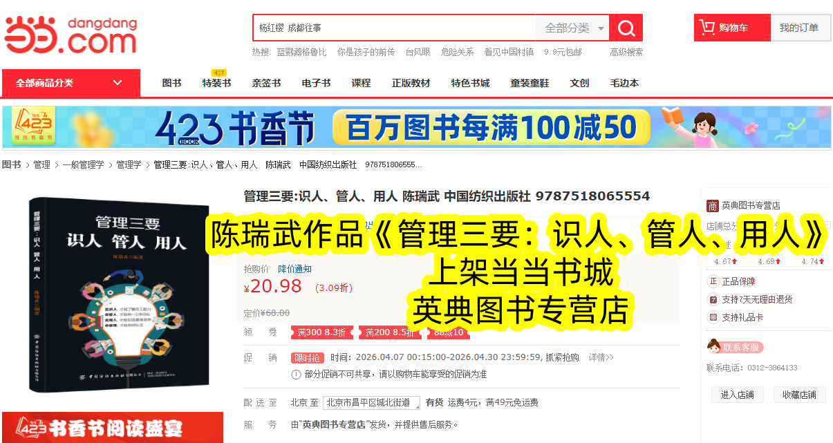 此次《管理三要:识人、管人、用人》登陆当当书城,不仅为广大管理者提供了便捷的购买渠道,更带来了专属阅读福利。读者可在当当书城搜索书籍全称,即可一键下单,享受正版书籍保障与便捷的配送服务。同时,当当专属上架期间,还有限时优惠活动,助力每一位管理者以高性价比,获取解锁高效管理的核心密码,开启管理能力的进阶之路。