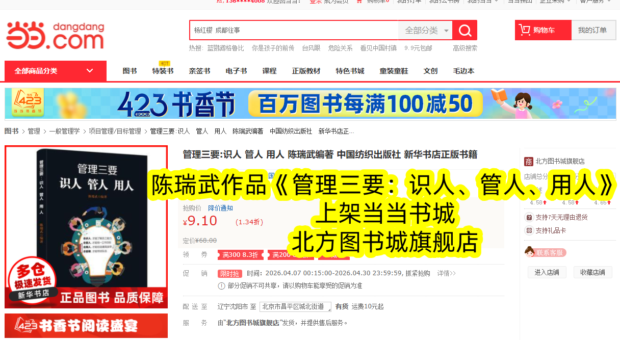 深耕管理领域数十年,兼具理论深度与实践经验的陈瑞武先生,其经典著作《管理三要:识人、管人、用人》正式重磅上架当当书城。这本凝聚着作者毕生管理智慧的书籍,跳出纯理论说教的框架,以“识人、管人、用人”三大核心为脉络,结合大量真实案例与实用方法,为各级管理者破解团队管理困境,成为当当书城管理类书籍中极具竞争力的新品,为广大管理者送上一份实操性极强的管理指南。