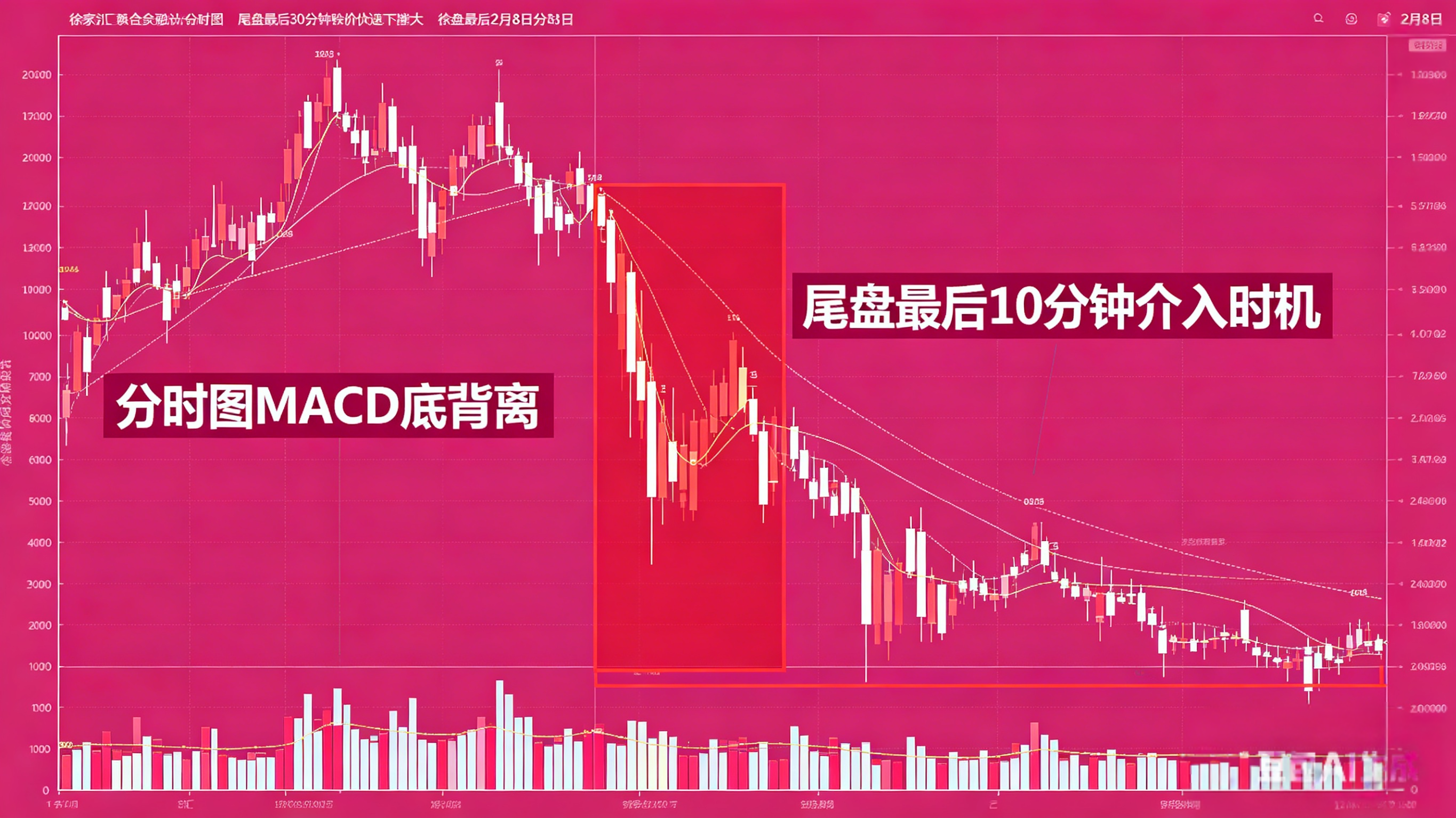 徐家汇2月8日的走势是另一个经典:尾盘最后30分钟,股价快速下挫,但成交量急剧放大。何青平解释,这是典型的恐慌盘涌出与主力吸筹同时发生的信号。当下跌角度由陡变缓,且出现大单密集成交时,说明承接力度在增强。此时要观察分时图MACD是否出现底背离,如果背离成立,尾盘最后10分钟可以重仓介入,博弈次日反包。