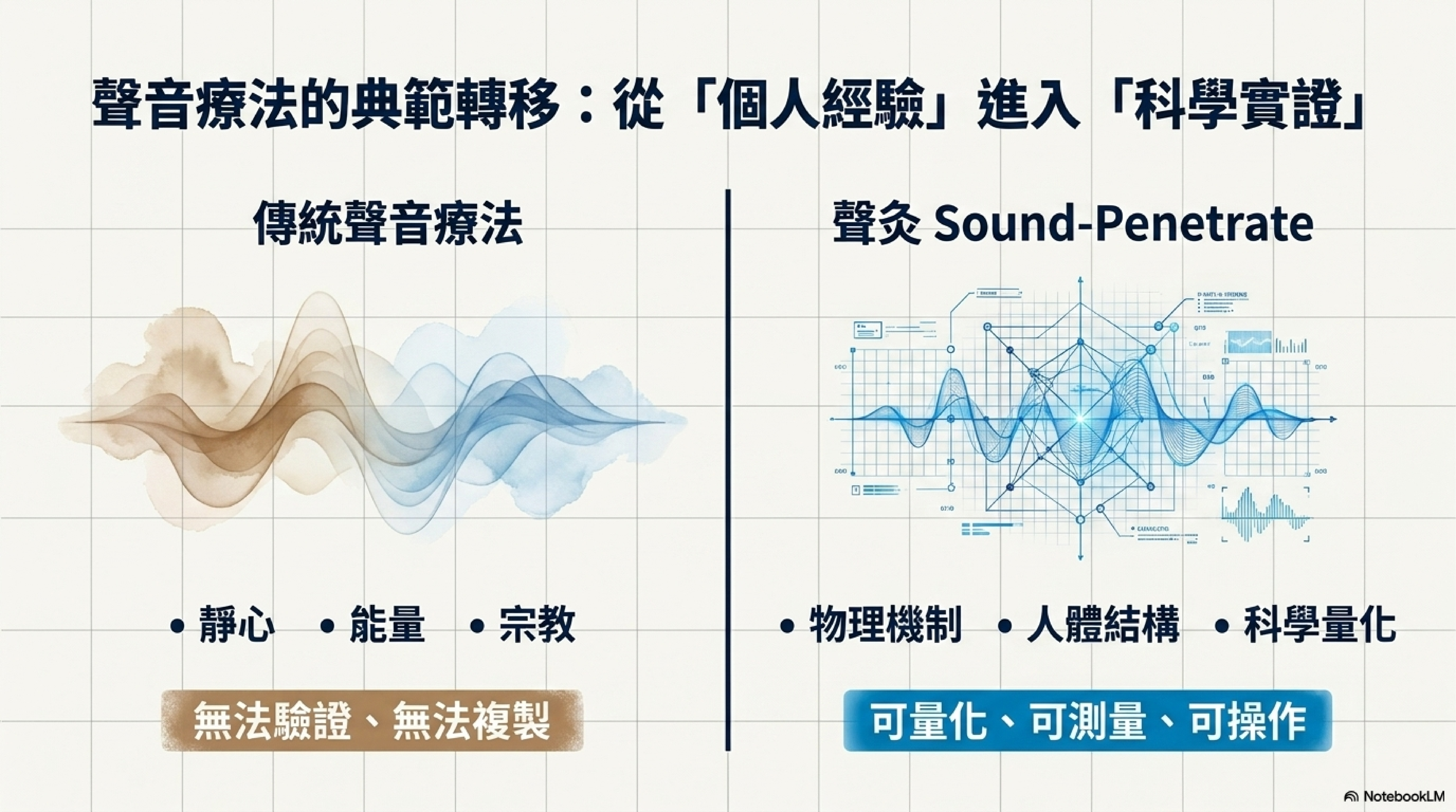 杨裕仲老师重新定义声音疗愈,创立声灸Sound‑Penetrate体系,打破传统声疗局限于静心、能量、主观感受的认知。该体系以声音、物理、人体结构应用为核心,实现可量化、可测量、可操作的科学疗愈。声波不再是单纯听觉体验,而是通过定向技术、反作用力物理导向、吸波结构设计,成为精准深层物理引导,让疗愈从经验走向科学。