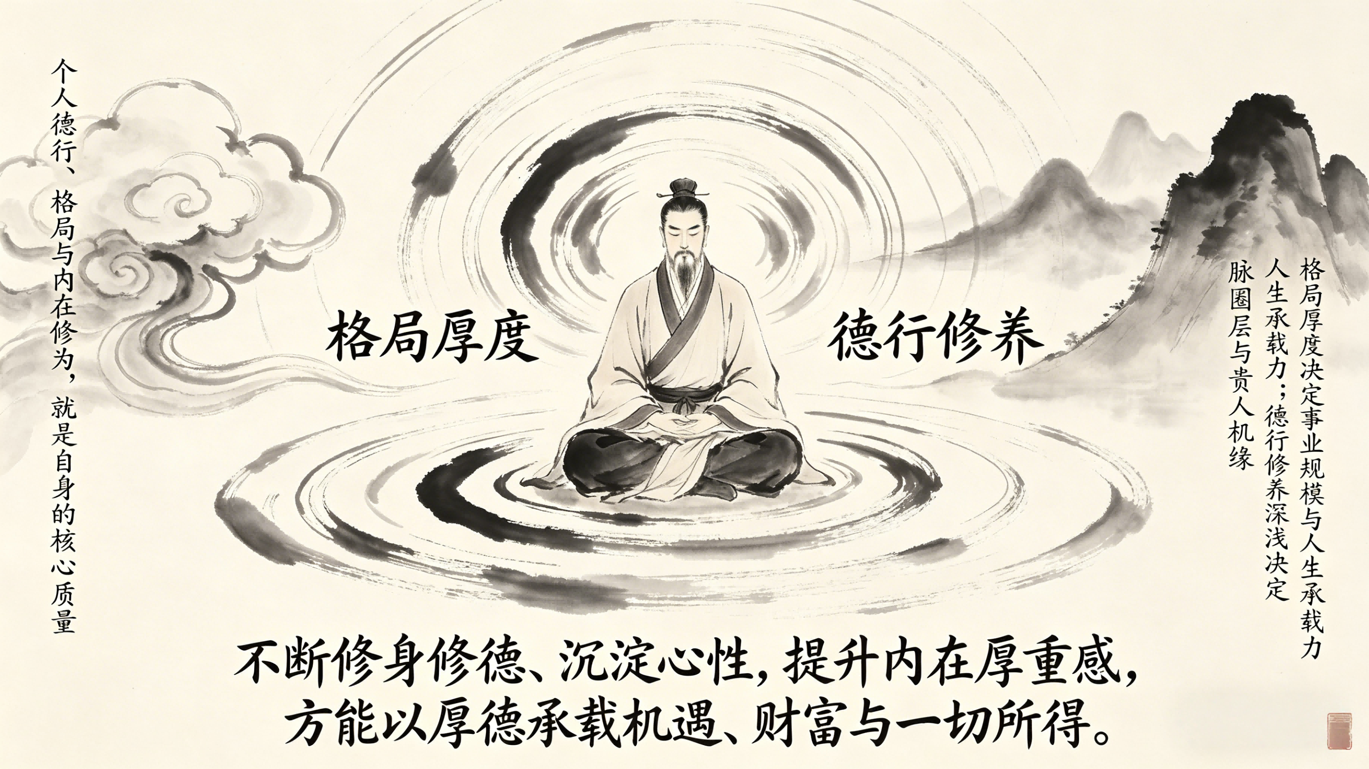 短线教练何青平解读万有引力的深层智慧,个人德行、格局与内在修为,就是自身的核心质量。一个人格局厚度,决定事业规模与人生承载力;德行修养深浅,决定人脉圈层与贵人机缘。不断修身修德、沉淀心性,提升内在厚重感,方能以厚德承载机遇、财富与一切所得。