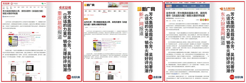 近日,由芳大集团吴小芳、吴利元老师著作、委托出书大师全权代理出版的《谈话的力量》一书被权威媒体广泛报道,吸引了社会各界的关注,《谈话的力量》一书的人气也节节攀升,甚至即将迈入畅销书行列。