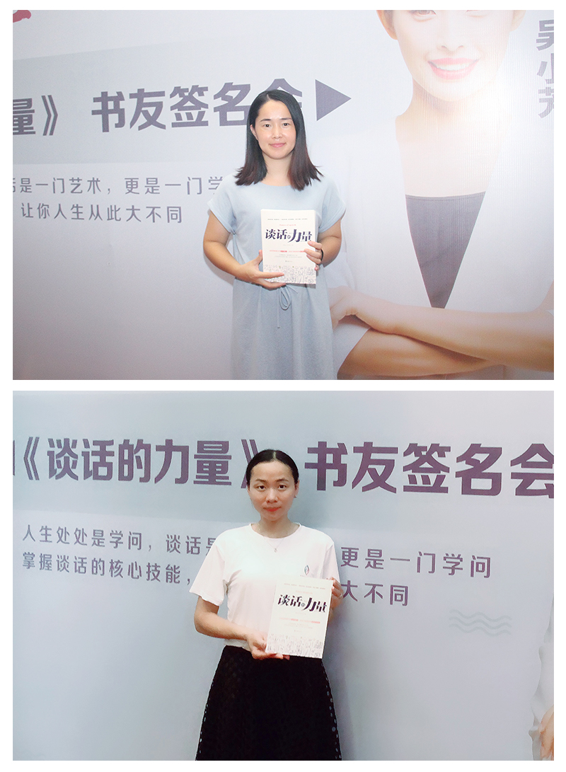 书籍的火爆,使得吴小芳老师的自品牌得以广泛传播,在这样的大趋势下,来自五湖四海的忠实读者自发形成书友会,以支持吴小芳老师极其著作《谈话的力量》一书。在书友会这个友爱的大集体,他们可以互相分享自己实用的谈话技巧、交往经验,共同学习进步。