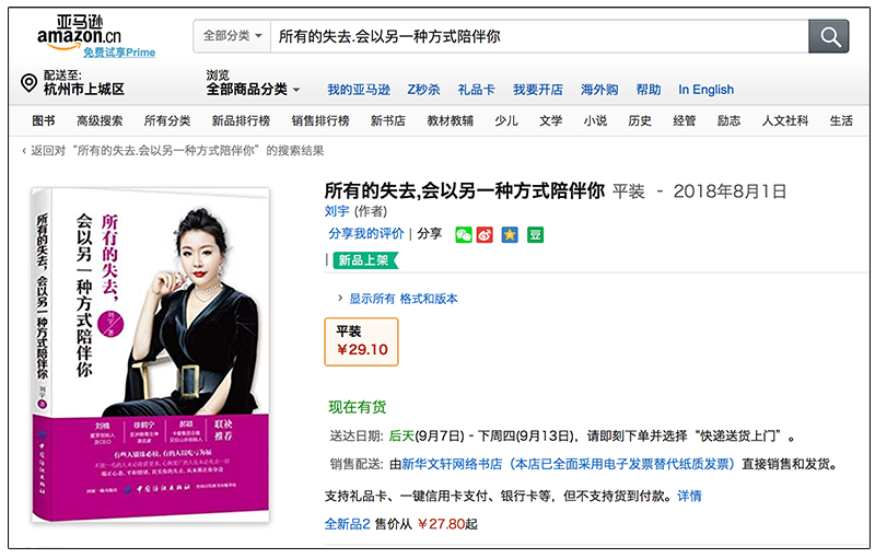 刘宇:刘宇著作《所有失去的,会以另一种方式陪伴你》登录亚马逊中国商城,火爆热销!