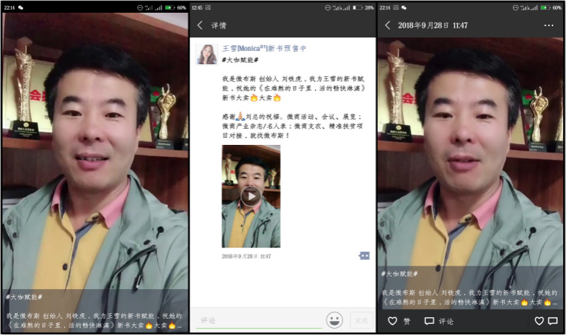 作为微布斯品牌的创始人,刘铁虎老师在微商展览微商产业杂志/名人录精准扶贫项目对接方面有着超高的建树,在视频中我们可以看到刘铁虎老师对王雪老师新书的赞美溢于言表。