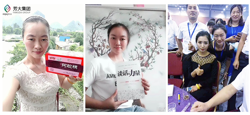 陶文菊就是一个经济独立的小女人,她希望自己是一个能力独立、经济独立、思想独立的女人。她结缘芳大是因为那段时间老是失眠多梦、掉发严重,再加上本身就有月经不调的毛病,恰巧自己好友朱友艳在朋友圈卖皇胶世家阿胶糕,就抱着试试的态度拿了5盒调理自己的身体。刚开始对于效果并没有很大期待,但是吃了半个月之后,发现晚上不做梦了,睡眠质量有了提升,气色也有好转。就这样因为自己的受益,陶文菊才正式开启了微商之路,她说只有自己成为受益者才有向别人分享的资格。