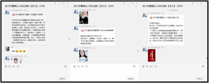 (名人名师讯)我们今天不说芳大集团的产品,我们来说说芳大集团那一群有爱,励志,有故事的芳大人。芳大集团的吴小芳董事长的书友会群里都是一群有爱的芳大人,她们都是因为结缘芳大,而让自己的人生产生了一系列的变化,我们来看看她们的互动。