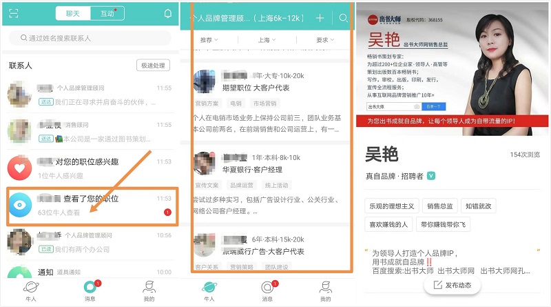 在boss直聘上面,我们出书大师网的招聘者发布了诸多出书大师网的企业信息与企业文化,给应聘者提供了一个平等交流的平台。通过这上面发布的消息,不仅可以让更多的人了解到出书大师网的存在,也加深了他们对于出书大师的理解,也潜移默化的宣传着出书大师的品牌力量。