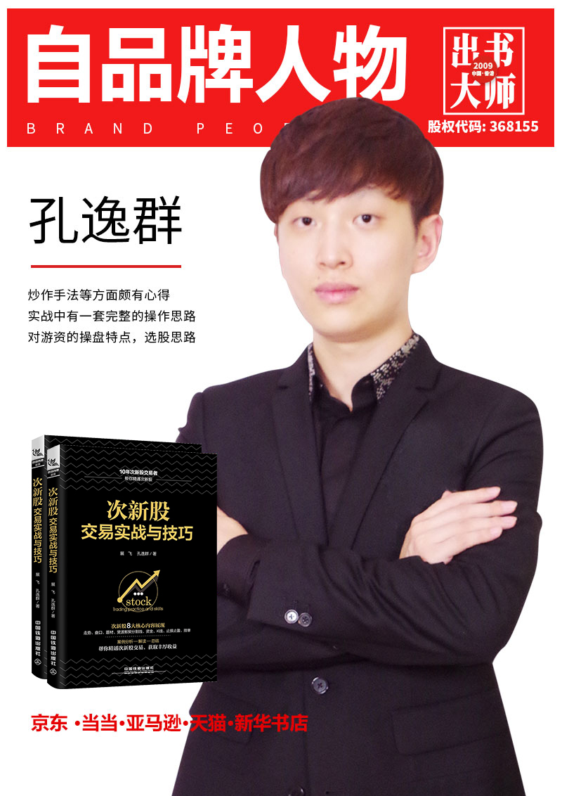 由双学位学士加拿大海归孔逸群,民间股神展飞(原名:孔良)联袂著作,委托出书大师全权代理出版的《次新股交易实战与技巧》一书,便是一本专门讲解次新股实际操作技巧的一本好书。此书不管是对游资的操盘特点,还是选股思路、炒作手法都让读者受益匪浅。自全网全渠道上架销售以来,便受到广大读者粉丝的热烈追捧,形成了一股销售热潮。
