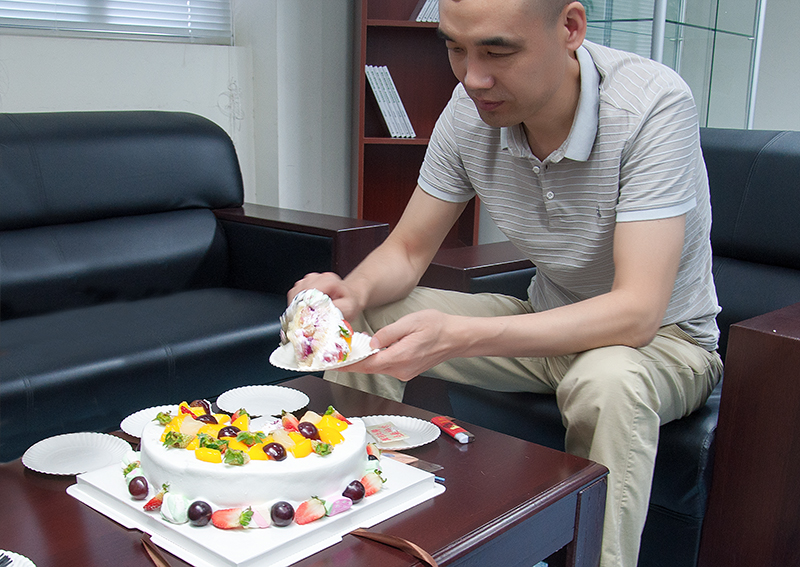 因此,出书大师出后服务部的全体员工为孔斌先生精心准备了一场隆重的生日party。生日是属于每个人最特别的日子。工作后的我们,为了生活四处奔波,常常会忽略这个意义非常的日子。即便我们忘记,却依然有人还记得。生日会上,头戴王冠的孔斌先生吹灭了蜡烛,切开美味的蛋糕分给众人。真诚的祝福,爽朗的笑声,温暖的笑脸……每一幕的欢声笑语都记录在镜头中,定格在每个员工的记忆中。