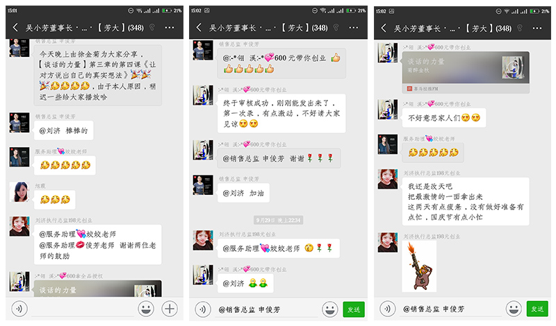 跟着芳大这一路走来,有汗水,也有泪水,甚至还有很多人的不理解,背后的指指点点。但是徐金菊坚信,芳大的这个选择是正确的,只要不断努力一定要可以看到不一样的自己。所以她从不畏寒畏热跑市场,下班回家照顾完孩子后立即出去做线下,本着真诚和辛苦努力也慢慢有了些小成就。正是一开始努力尝试后的回报,给了她更大的信心和鼓励,16年买来人生中的第一辆车,从一切都自己做,开车拉货、送货、做线下每一项都是自己一个人再到如今带领着属于自己的团队,去打拼一个美好的明天。