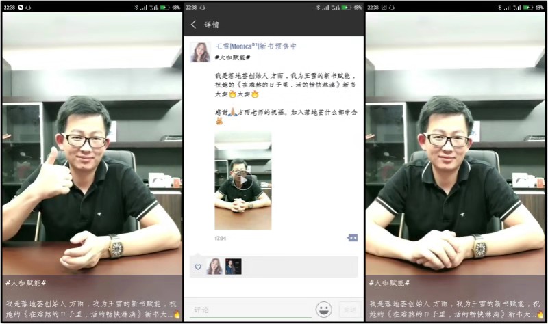 作为落地荟联合品牌的创始人,方雨老师在微商行业可谓是前辈了,在视频中我们可以看到方雨老师对王雪老师新书的赞美溢于言表。
