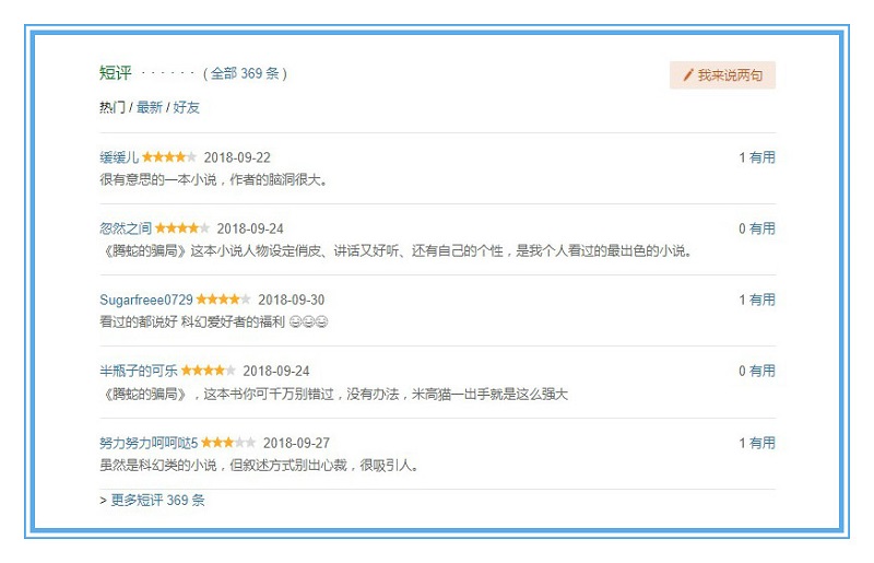 豆瓣读书的打分系统极具客观性,理论上大家看到的评分都是每一位网友一个一个打出来的,都是自己真实阅读体验的体现。而且习惯在豆瓣阅读上打分的观众往往阅读储备量也相对较高,对书籍品质也相对更挑剔,一般打出的分数都低于其他阅读平台,具有较为真实的参考价值。《腾蛇的骗局》能够摘取8.5的高分,是其优质内容的综合表现,十分得难能可贵。