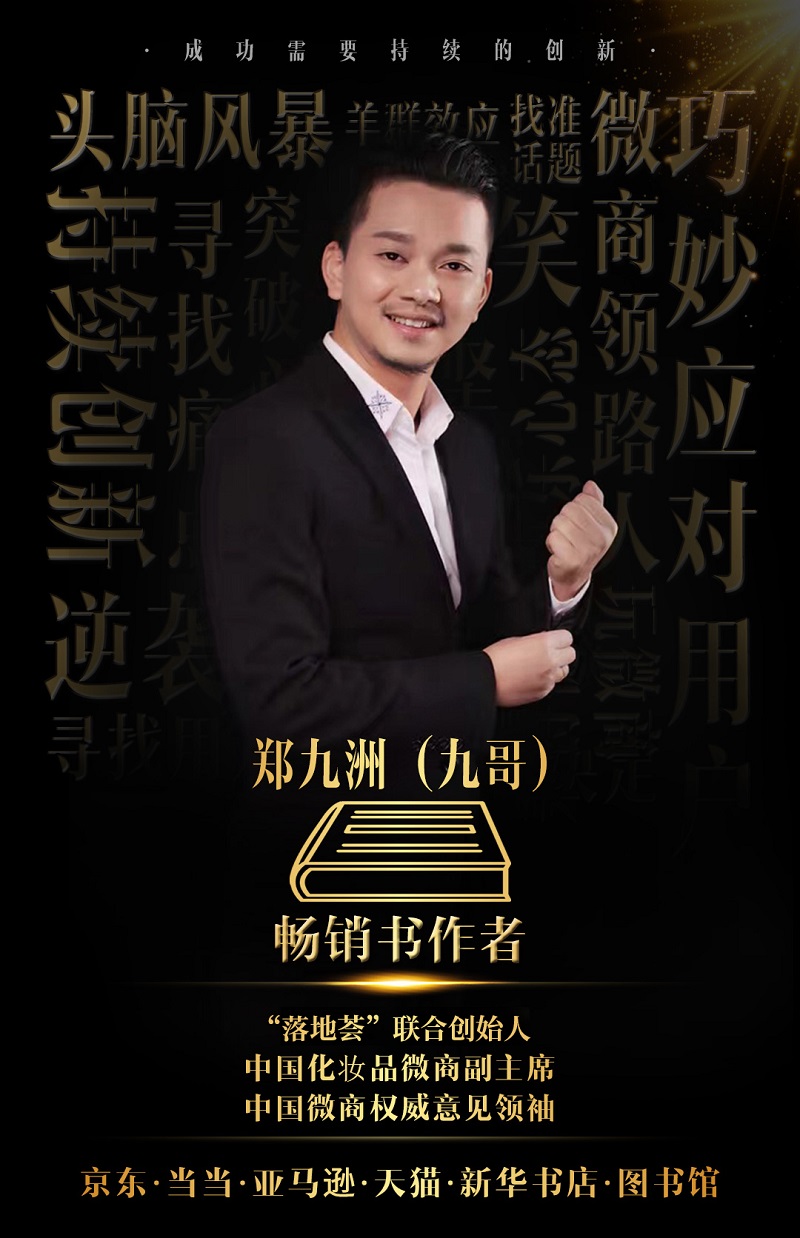 九哥的大名,想必很多人都有所耳闻。郑九洲(九哥)是“落地荟”联合创始人,也是中国微商意见领袖。在微商圈摸爬滚打多年,九哥积累了许多做微商的经验,在他的帮助下,微商发展得越来越健康,越来越快速。
