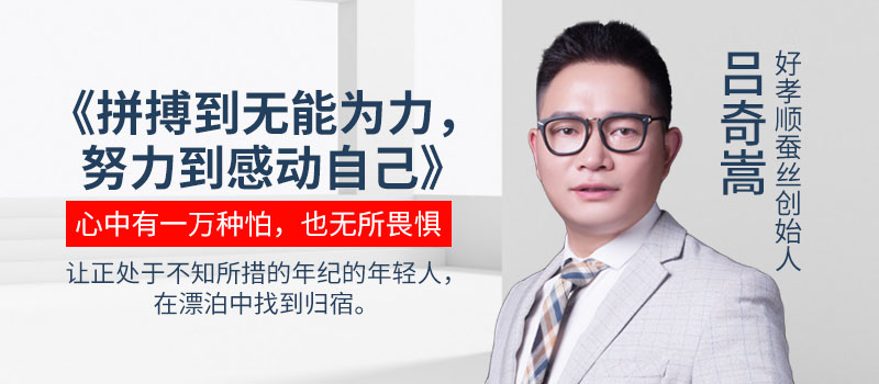 怀着一腔热血和赤诚选择了好孝顺蚕丝,在最初,刘总也受到了不少的阻碍。试想,创业路上怎么可能没有风雨,正是这筚路蓝缕造就了今日的辉煌成就。