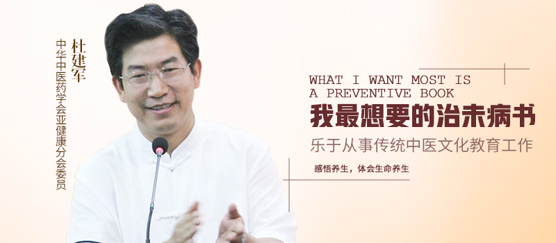杜建军长期从事中医学方面的教育工作,致力于中华传统养生文化的传播,桃李满天下。他具有丰富的中医养生保健临床和讲座经验。而作为一名教师,他拥有充分的资历,现任中华中医药学会亚健康分会委员,陕西省养生协会讲师及团专家讲师,西安中医养生文化研究会理事,为多家学校、企业的客座教授和特约养生顾问。
