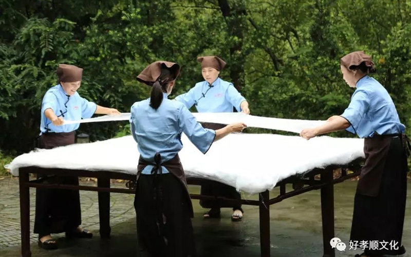 第六步开绵,注意茧成一掌绵,三掌绵成一丝帛,保暖效果更佳。