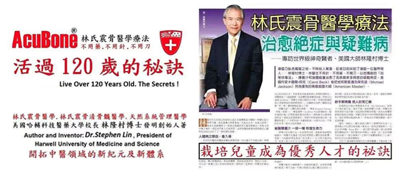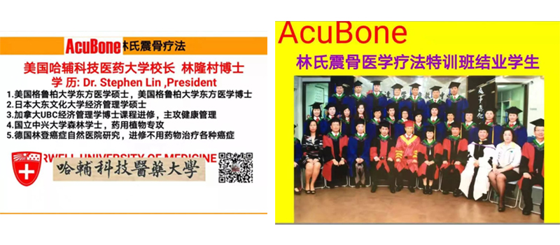 引以为自豪,林博士有许多耀眼的光环:世界传统医学会荣誉会长,加州中医师联合总会医师再教育客座教授,美国国际医药大学博士生院教授,世界中医骨伤联合会美国分会总顾问,世界手法医学联合会常务副主席,震骨清骨髓医学研究委员会会长,美国天然疗法研究院院长,美国天然系统管理医学七管三治疗养法创始人,Acubone林氏震骨清骨髓医学创始人,美国哈辅科技医药大学校长,创办人。