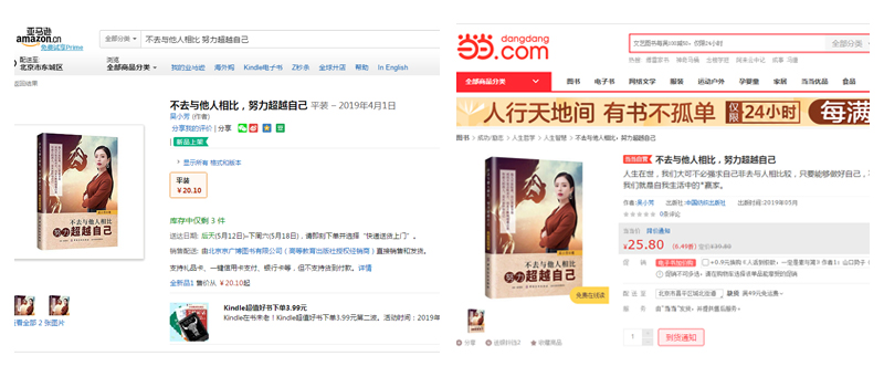 读者的喜爱是对书籍最大的支持,为了让他们能够通过一个更加便利的渠道去购买,获得最舒适的阅读体验,《不去与他人相比,努力超越自己》一书目前已登陆京东、天猫、当当、亚马逊、一号店等各大网络平台,全网全渠道上架销售,相信在广大读者的热烈追捧之下,此书也将开启一轮新的阅读热潮,正式拉开火爆热销序幕。