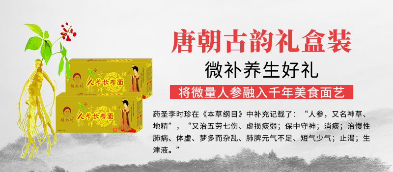 美食养生+文化养生,就是胡奶奶人参长寿面礼盒!胡奶奶人参长寿面适合所有注重养生的年轻人和年长者!送好礼,就送胡奶奶人参长寿面!无论是工作压力山大的年轻人、辛苦拼搏的职业经理、辛勤为后代的伟大父母们,还是渴望健康生活的长者、富有者、有钱有闲一族,您都可以选择胡奶奶人参长寿面,伴您健康每一天!还可作为好礼送长辈、送客户、送朋友!
