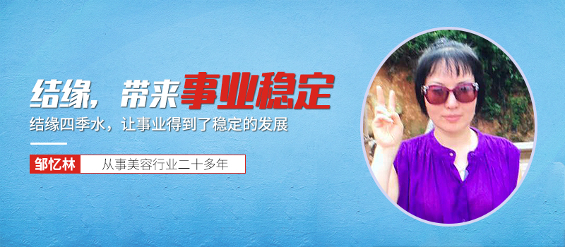 结缘四季水,让邹忆林的美容事业得到了稳定的发展。而且,还未邹忆林的事业,带来了较好的成长空间。她,也找对了属于自己的人生事业方向。