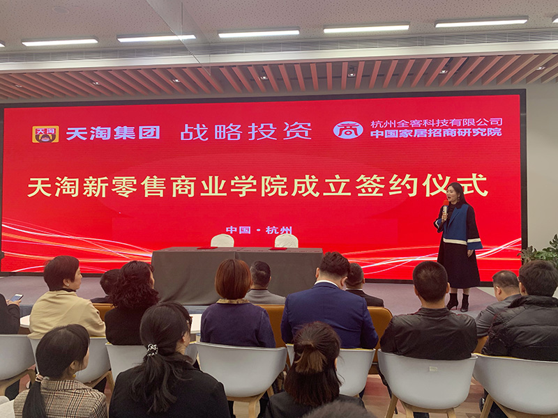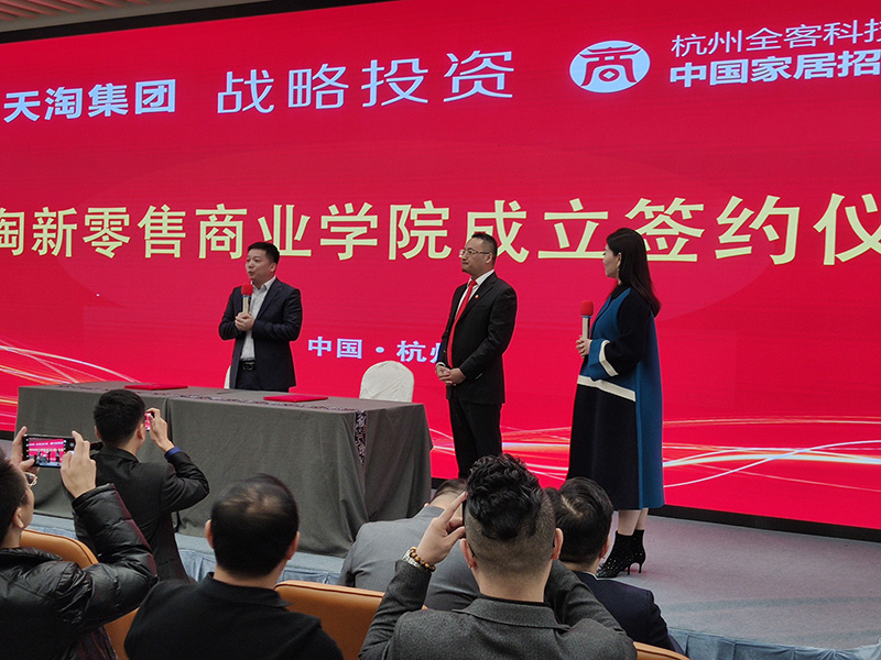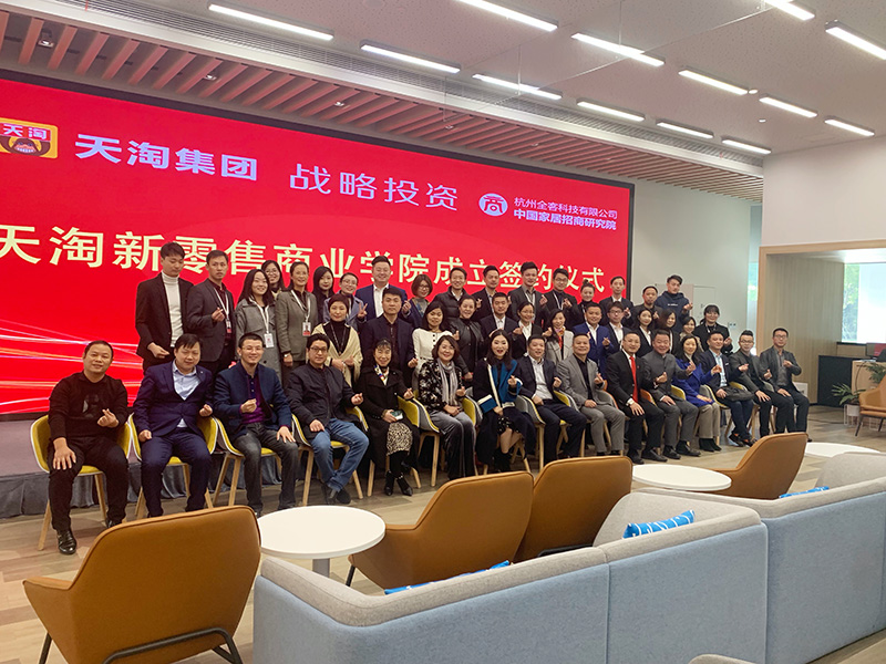 2019年11月19日,天淘集团战略投资中国家居招商研究院/杭州全客科技有限公司,对方就如何应对新零售热潮下的发展方向,强强联袂,共同携手成立了天淘新零售商业学院,并于阿里巴巴滨江园区举行了隆重的签约仪式。