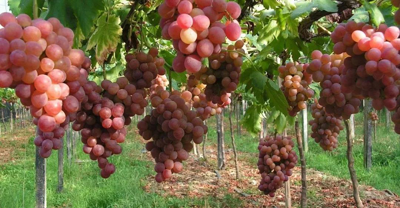 红提被誉为世界四大水果之首,隶属于新疆阿克苏,位于天山中段南麓、却勒塔格山北缘的山间盆地、渭干河上游流域的拜城县,拥有占地12000亩的红提种植基地,这里海拔1230米,昼夜温差达18度,背靠美丽的世界自然遗产“新疆天山”,常年享用天山雪水灌溉,使得红提清脆爽口、味美香甜。到了每年8月中下旬至9月中下旬红提采摘期,映入眼帘的是一副一串串穗大、艳丽的红提倒挂在藤上的丰收盛景!