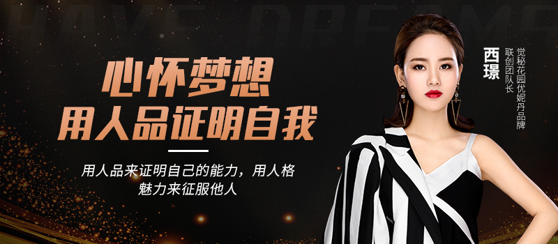 俗话说,商场如战场,在商场里厮杀的人,比普通人更抗压,也更努力。但有些人会在商场里拼搏的时候失去努力的方向,随着波流浮浮沉沉;而有些人会坚定自己的信念,满怀希望,用人品来证明自己的能力,用人格魅力来征服他人,她就是觉秘花园优妮丹品牌联创团队长西璟。