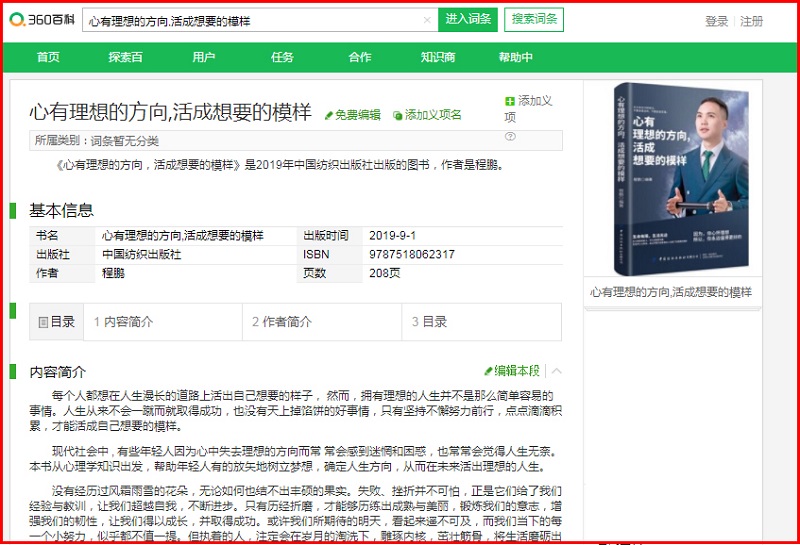 众所周知,百科是一部有着平等、协作、分享、自由理念的网络百科全书,致力于为每一个互联网用户创造一个涵盖所有领域知识、服务的中文知识性平台。而深受大众欢迎的百度、360、互动三家百科平台也有着近乎严苛的审核标准,通俗而言,只有真正贴近真理、真正被大众认可的书籍才能成功被三家百科认可。