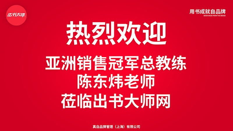 在职业发展道路上,陈东炜老师深知打造个人品牌的重要性和必要性,只有建立属于自己的流量IP,才能为自己的职业发展打开通路。 此次陈东炜老师与出书大师网的合作,可谓是强强联合,双方将聚焦“打造作者自品牌”的核心业务体系,围绕为更多企业家赋能为主题,携手发展,多方共赢 !