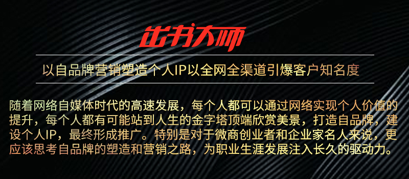 如同这些大咖的声名大噪依托出书大师网强大的交互平台一样,自品牌要成为业界标杆也需要一个能够迅速传播的交互平台。作为专业图书策划出版领域中的领跑者,出书大师网有实力且有能力去挖掘客户的人物属性,实现其个人自品牌的广泛传播。