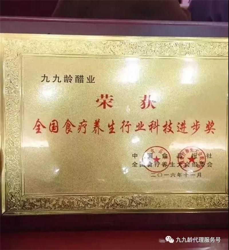 2016年11月:被中国食品报,全国食疗养生大会组委会授予:全国食疗养生行业科技进步奖。
