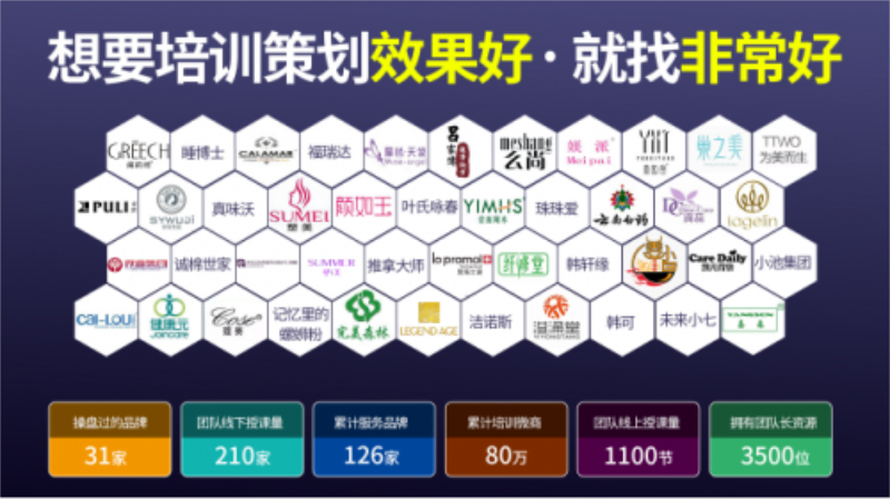 授课的导师均是一线实战派导师,课程内容实战实在实用!服务的品牌包括:(良沐之元、麦吉丽、凯儿得乐、小池集团、溢涌堂、里海之谜等知名品牌)