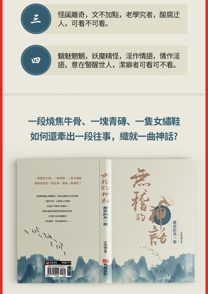 本书是繁体字的版本。以前看到繁体字的会觉得很头疼,我怎么能看懂!但这本《无稽的神话》里的繁体字却不会让人觉得烦。读起来依然很流畅,甚至还感觉自己多认识了一些繁体字。