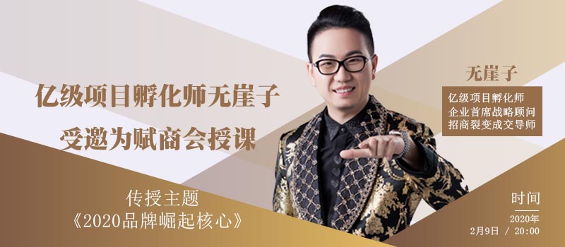 2020年2月9日20点整,具有十年品牌营销经验的亿级项目孵化师无崖子老师受邀为赋商会进行授课,传授主题为《2020品牌崛起核心》有关的品牌经验。