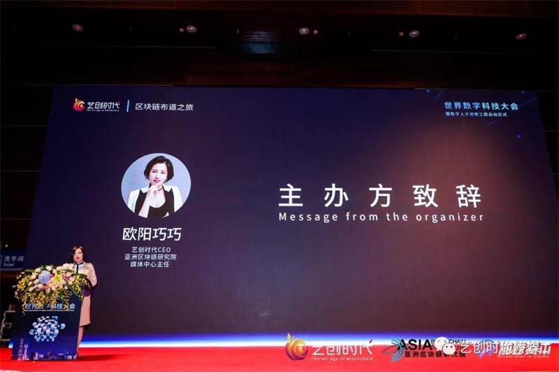 随后本次活动主办方艺创时代CEO、亚洲区块链研究院媒体中心主任欧阳巧巧进行了致辞,首先表达了对于参加本次大会嘉宾及观众的感谢,她表示艺创时代之前作为一家成功的活动公司,已经在行业内有了一定知名度,未来,艺创时代将转型为媒体公司继续为行业服务,以专业严肃的态度为行业输出行业有价值的区块链思想,抢占区块链内容制高点。