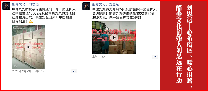 中健九九龄团队,也不例外。他们,在创始人刘思远老师的带领下,分别向疫区的一线医护人员送去了价值一百多万元的抗疫物资。其中,包括了向一线医护人员捐赠的价值150万元的九九龄维他醋以及向郑州“小汤山”医院捐赠的1000盒29.9万元的九九龄维他醋。