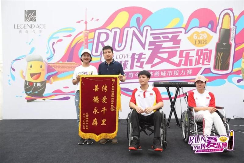 6月29日,千名传爱大使齐聚黄浦江畔北外滩广场,吹响全球传爱乐跑上海站的号角!此次乐跑活动特别邀请了北京残奥会赛艇TA级男女混合双人桨冠军——周杨静女士和单子龙先生现身助力,在上海站乐跑活动中,共筹传爱善款100,000元,捐予罹患渐冻人症的王甲先生。借此机会号召全社会关注残疾人群体,帮助社会弱势阶层拥有更健康灿烂的明天,同时这也是传奇今生履行企业社会责任,推动中国慈善公益事业发展的重要见证。王甲先生亦将“传爱千里,善德永存”锦旗赠予传奇今生。