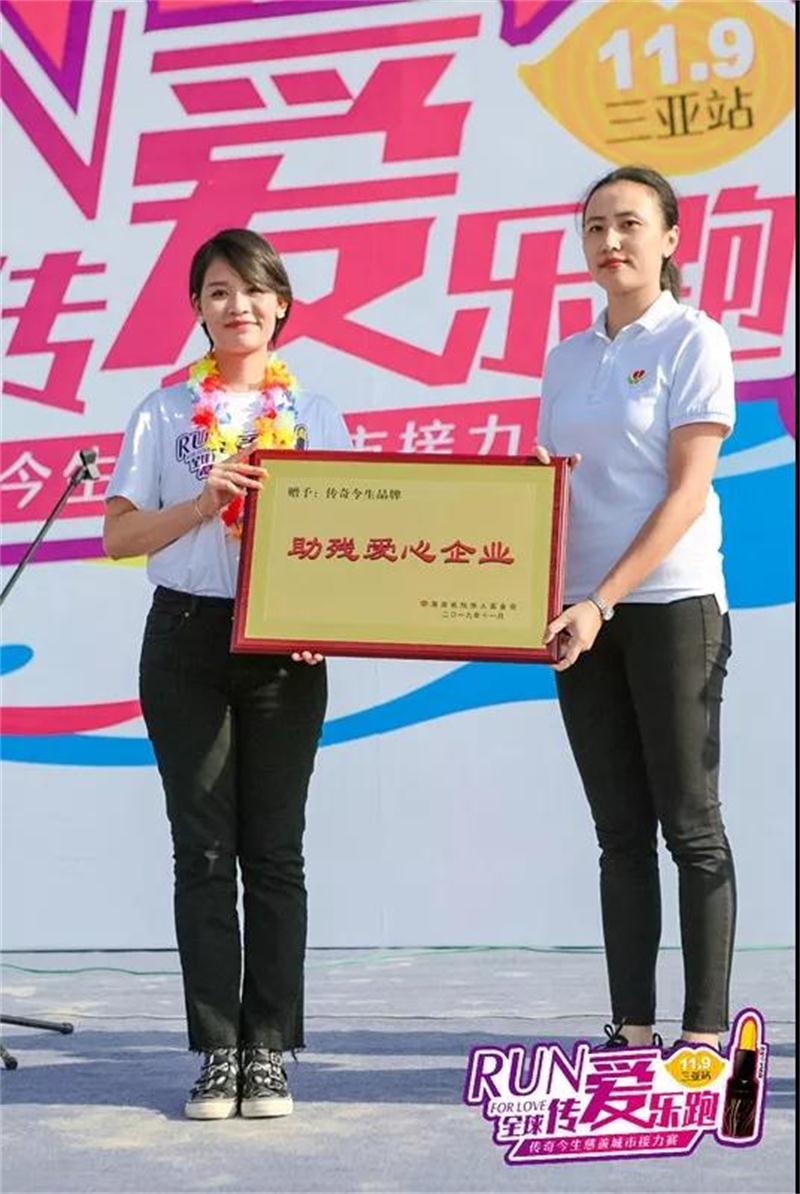 海南省残疾人基金会赠予传奇今生“助残爱心企业”牌匾