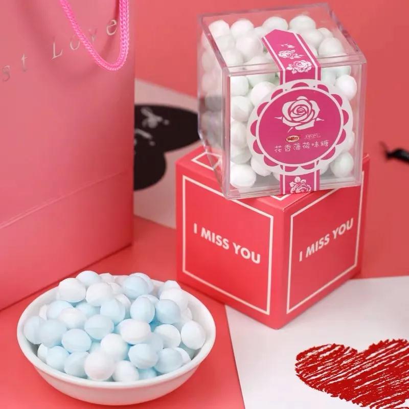 四种口味,亚克力的外壳小巧大方,里面则是马卡龙配色的糖果,一丝丝的凉感,夹杂着花香的味道
