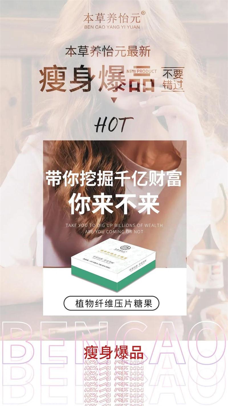 面对市场转向,本草养怡元抢占了先机,品质过硬、定位清晰、创新品类,目光聚焦在轻松减肥态势上,衍生了新品——植物纤维压片糖果。