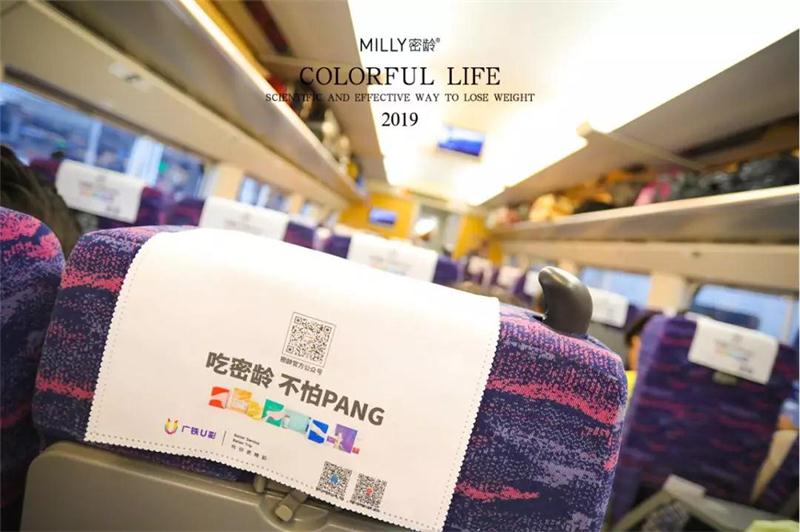 为了更快、更好、更精准的传达密龄品牌价值,抢占传播高地,实现品牌最大化的全方位覆盖。2019年4月25日起,密龄大手笔斥资投放南广高铁专列广告,投放时间1个月,单次封闭式高关注度、强视觉冲击广告时常3小时