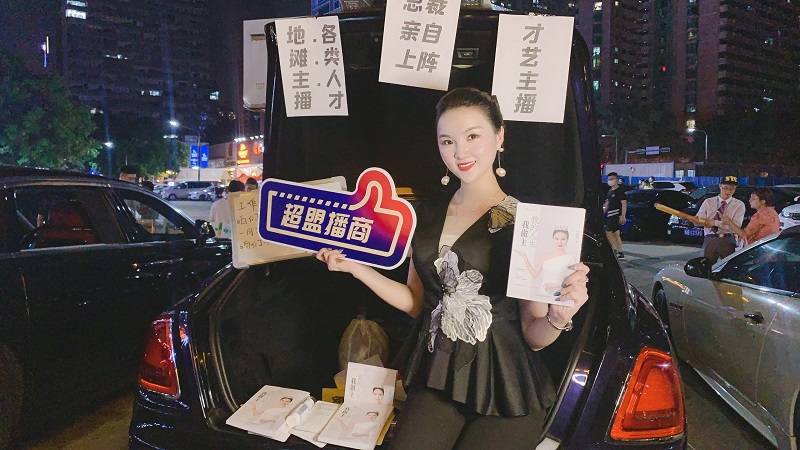 在华灯初上繁华热闹的街头巷口,婷婷老师亲自上阵,全程直播售卖自己的新书《我的人生我做主》。选好位置后,打开劳斯莱斯豪车的后备箱,一本本码放整齐的新书映入眼帘,婷婷老师柔美的声音环绕四周,引得路人纷纷驻足观看,大家拿起书籍仔细翻阅,不时抬头与婷婷老师攀谈,看了书中的介绍并了解婷婷老师的经历后,很多人当场购书表示回家后详读。