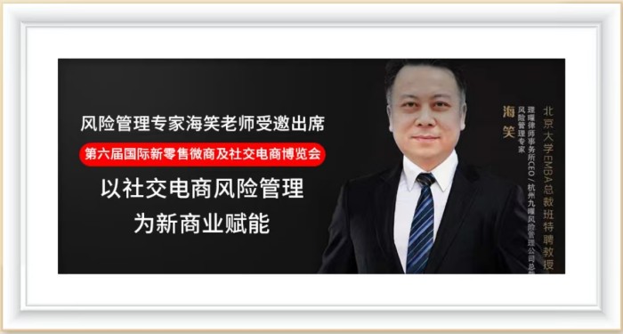 杭州九曜风险管理公司总裁海笑老师,将作为特邀演讲嘉宾与阿里巴巴、云集、蘑菇街、贝贝集团、斑马会等社交电商领域巨头品牌创始人、CEO共同探讨社交电商的合规运营与风险管理,如何通过法律手段提升品牌可持续发展。