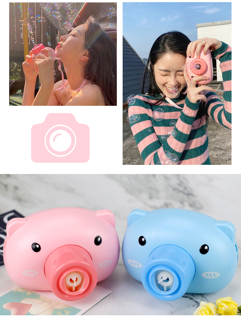 电动设计,只需轻松一按,可爱的粉色小猪相机里就会源源不断的吹出泡泡,伴随着LED灯光和动感音乐,就是宝贝超爱的那款,必入!