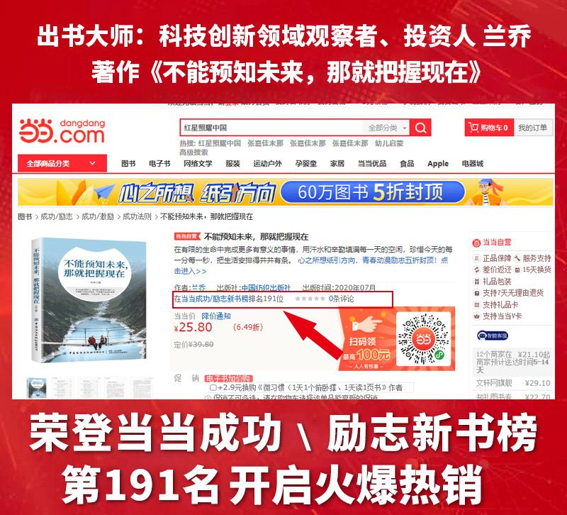 近日,由中国纺织出版社出版、出书大师网全权代理策划出版、兰乔老师创作的著作《不能预知未来,那就把握现在》喜获当当网成功励志新书榜第191位,广受读者朋友的关注和青睐。