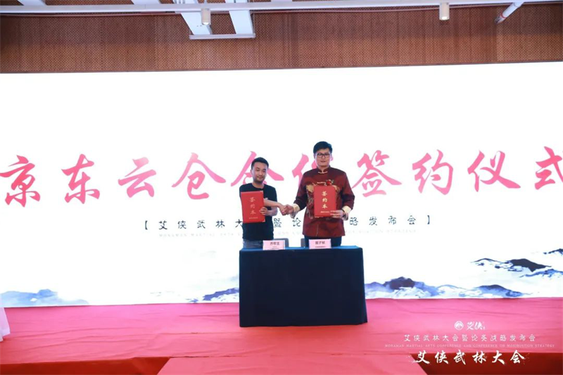 随后,是艾侠集团与京东云仓物流签署战略合作书的重大环节,经过多方研究与考量,双方作出强强联合的重要决策,携手谋求更美好的未来。相信京东云仓物流与艾侠的合作能为各位经销商们提供更高效、更便捷的服务体验。