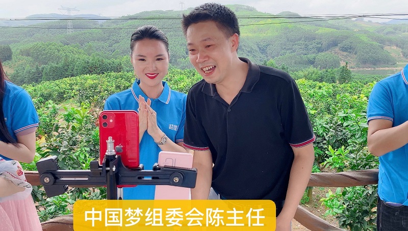 同时,中国梦组委会消费扶贫服务中心许总也来到了销售一线,他与干部职工一起参与消费扶贫,鼓励爱心企业与种养企业对接。在婷婷老师的直播间,许总称,要将扶贫基地生产的优质红柚输送到全国各地销售,广大网友表示一定鼎力相助。