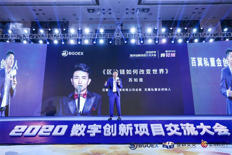 百翼资本管理有限公司总裁、百翼私董会创始人苏如是先生发表了题目为《区块链如何改变世界》的振奋人心的演讲,他用自己激情澎湃的声音告诉人们,历史的变革从千年变成百年,再从百年变成10年,再变成五年、三年甚至不到一年,时代变革的时间周期已经越来越短,在未来,深圳将会是全球最耀眼的城市,而这个城市10%的GDP贡献将来自区块链领域,苏先生坚信区块链一定会改变世界,并且它的价值将会是传统互联网的一千倍!